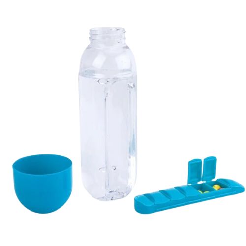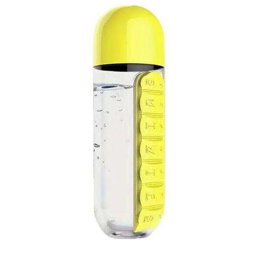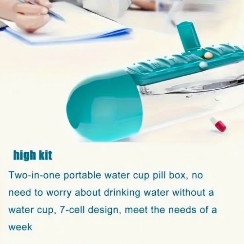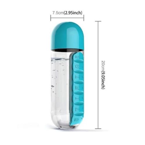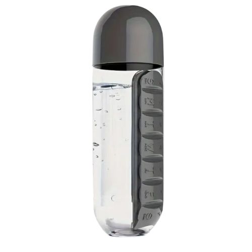 Stay hydrated and organized with this 600ml water bottle and built-in 7-day pill organizer. Perfect for travel, gym, or daily use, it combines convenience and functionality in one sleek design.